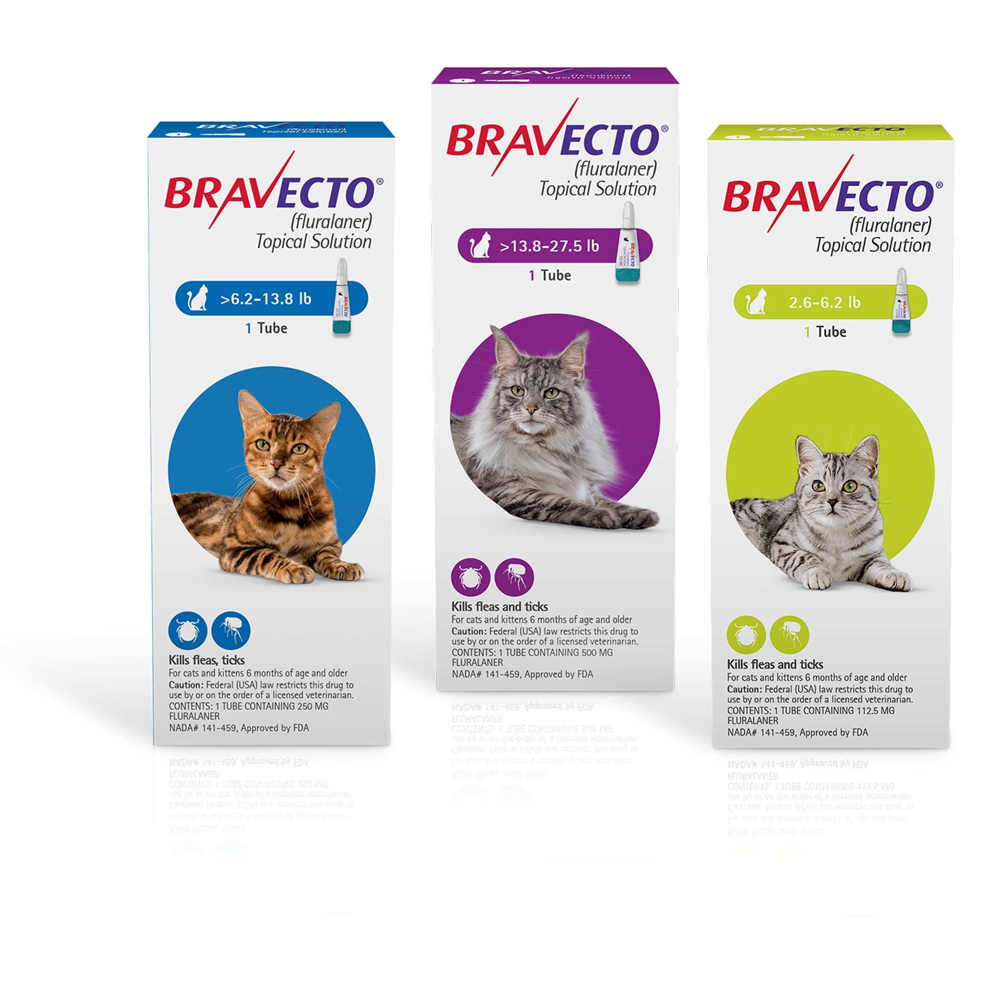 . BRAVECTO Topical Solution for Dogs. Bravecto for cats is labeled only for cats over 6 months of age. 44 out of 5 stars30389.